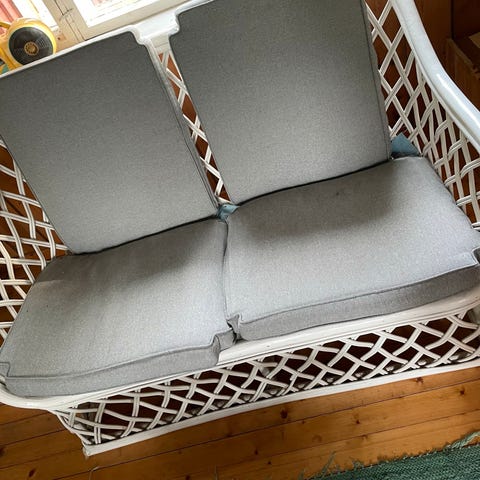 Sohva, 2 tuolia ja pöytä lasitasolla.