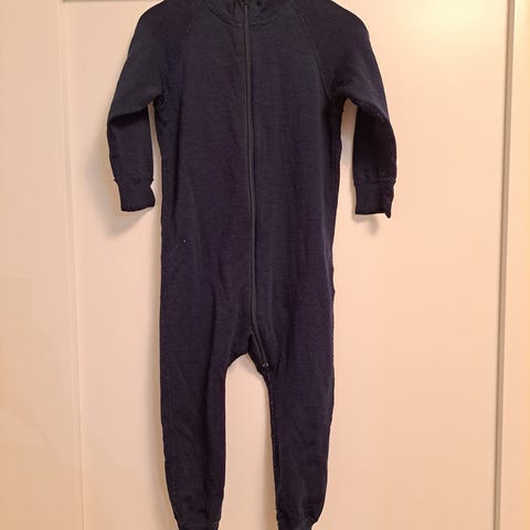 Myydään tummansininen popin merinovillahaalari, koko 86.