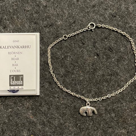 Kalevan karhu nilkkaketju hopeaa. Pituus 25 cm.