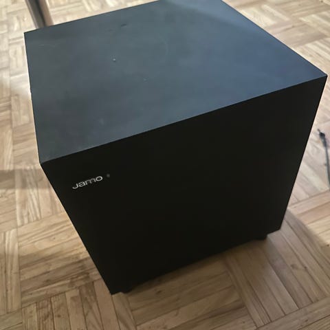 Toimiva kotiteatteri subbari. 8" elementti+ passiivisäteiliä. Korkeus 49 pituus 43 leveys 24cm. Kaikin puolin toimiva!!.
