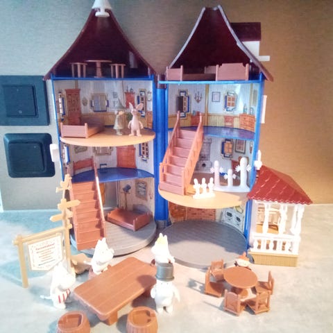 Muumitalo, kalusteet ja 19 muumihahmoa.