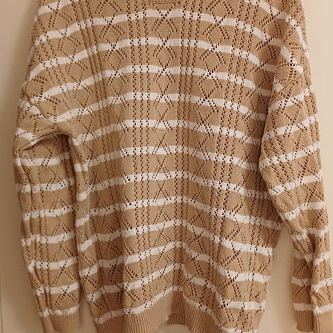 Vähän käytetty erittäin lämmin ruskea villapaita. 21% villaa, 49% akryylia ja 30% polyamidia. Levenevät hihat, paita myös hieman kellomainen malli. Koko L.