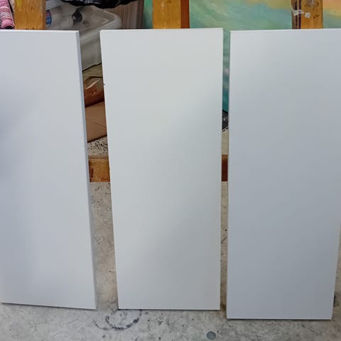 Hyllytasot lastulevyä, hyllyjen tuet puuta.