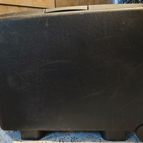 2 kertaa ruumassa ollut, täysin ehjä laukku. Siisti mutta toki jotain jälkeä pintaan jäänyt. Lukko ja vetoketju toimii. Sisältä myös ehjä. Renkaat pyörii.