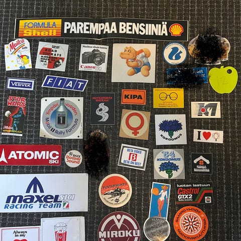 Kokoelma 17 erilaisia vanhoja vintage tarroja 70- ja 80-luvuilta.