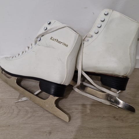 React luistimet, koko 39. Väri valkoinen. Perinteinen nauhakiinnitys ja teräskiskot. Soveltuvat yleiseen luisteluun ja harrastekäyttöön.