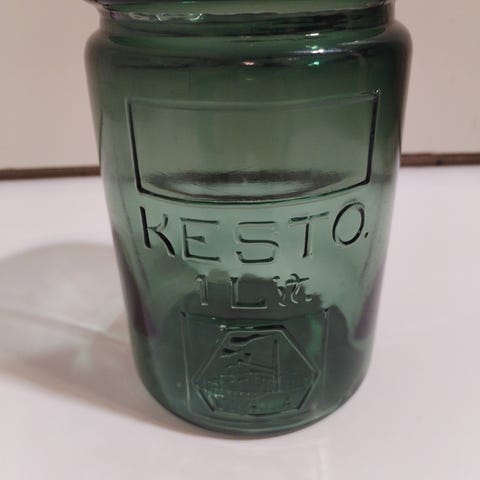 Täysin ehjä vihreä narupurkki.