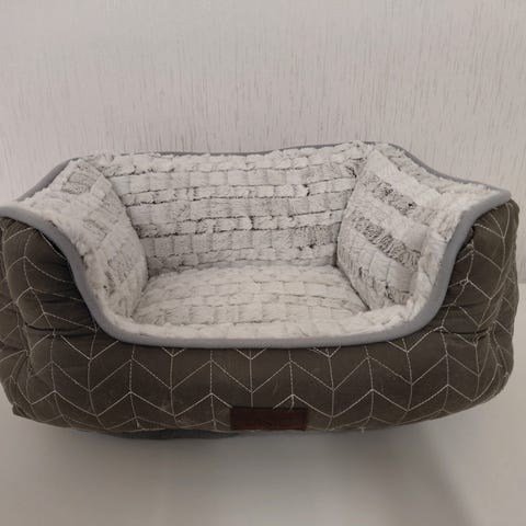 Punaruudullinen ovaalinmuotoinen lemmikin peti. Pehmeä kangaspinta ja reunallinen malli. 75cm x 65cm