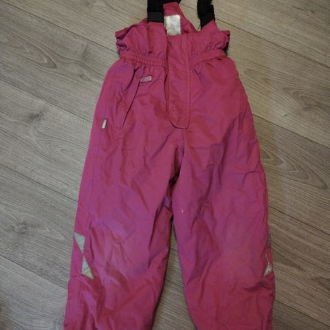 Reima lasten toppahousut tytöille. Koko 128. Väri vaaleanpunainen. Materiaali polyesteriä. Housuissa on lahkeensuissa vahvikkeet ja heijastinyksityiskohtia. Soveltuvat ulkoiluun ja talvikäyttöön.