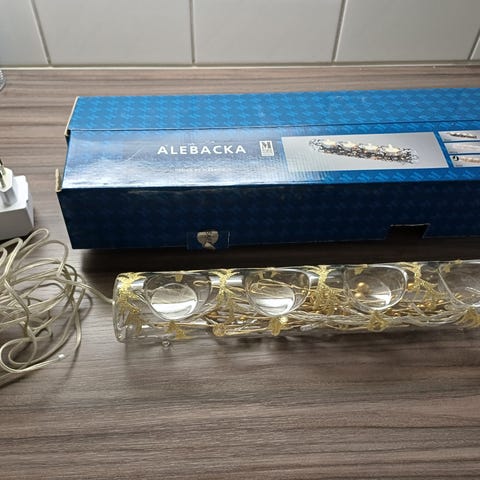 Peili alusta ja kolme lasista tuikkulyhtyä