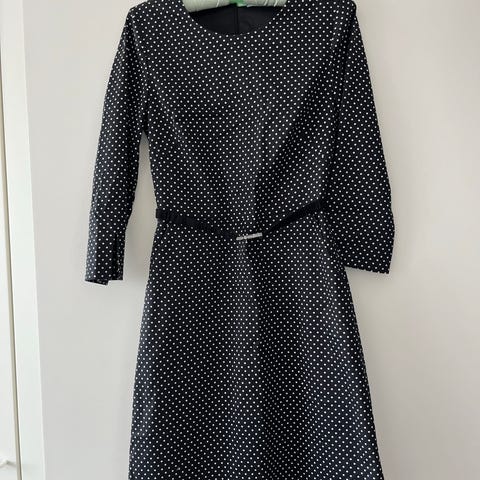 Naisten musta ilta- tai juhlapuku koossa 34. Mekossa on sileäpintainen, hieman kiiltävä kangas ja vartaloa myötäilevä yläosa. Helmassa on kevyesti levenevä leikkaus. Yläreunassa kulkee koristeellinen pitsi- ja kukkayksityiskohta. Sopii juhla- ja iltatilaisuuksiin. Glamouri tyylinen. Materiaali polyesteri elastaani. Käsinpesu, silitys nurjalta. Tästä vaikka tuunaukseen.