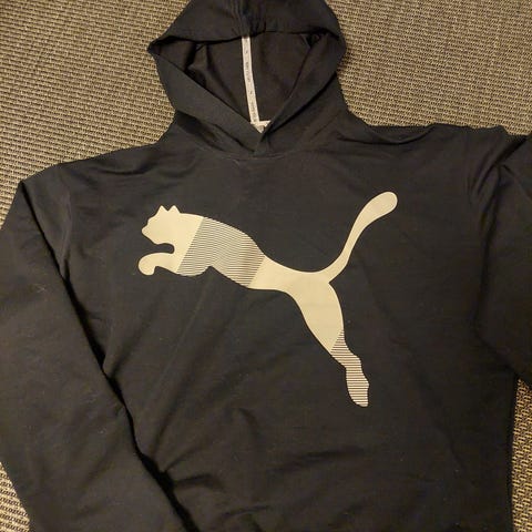Musta/valkoinen Puman huppari. Hupussa verkkovuori ja edessä kengurutasku. Sopii sekä miehille että naisille.