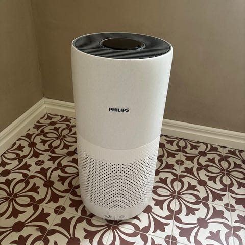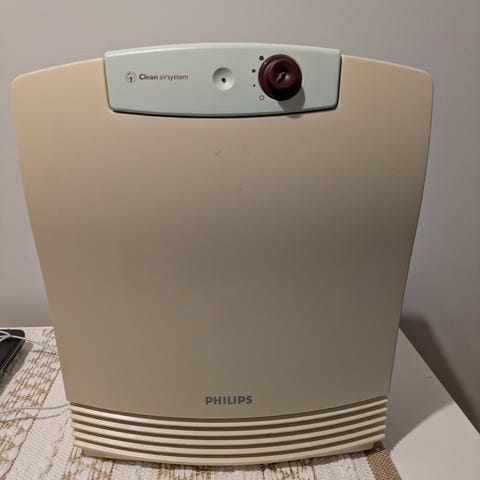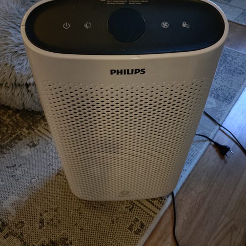 Toimiva ilmanpuhdistin. Ilmaisee ilmanlaatua värikoodeilla.
