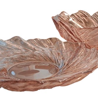 Riihimäen Lasin iso roosa tarjoilukulho halk. 27 cm, kork. 10 cm sekä roosa tarjoiluvati/lautanen, halk. 29 cm, kork. 5 cm, suunnittelija Pertti Kallioinen, 80-luvulta, erittäin hyväkuntoiset, myydään yhdessä