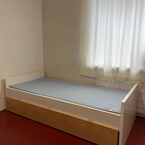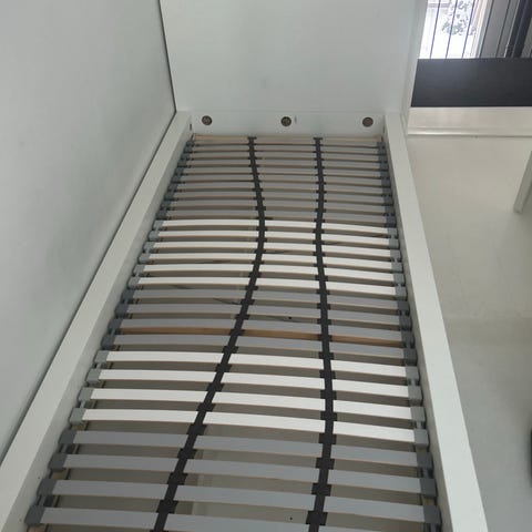 IKEA sänky, jossa sälepohja ja kaksi säilytyslaatikkoa. Väri valkoinen. Sänkyyn sopii 90cm leveä patja. Laatikoiden mekanismit toimii ja muutenkin siistikuntoinen.