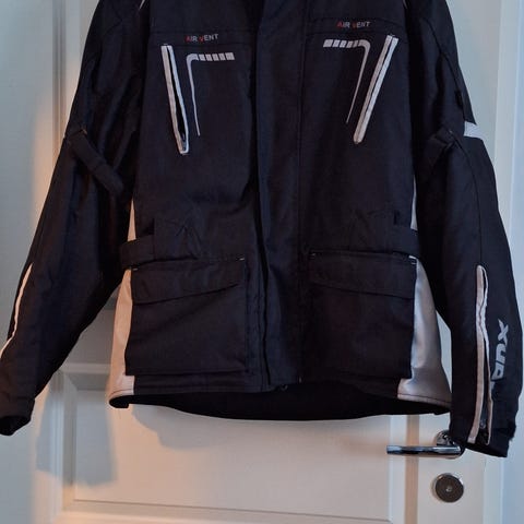 Hanx naisten ajotakki ja ajohousut. Musta kaksiosainen ajovarustesetti, jossa vaaleanpunaiset kontrastiraidat ja heijastinyksityiskohtia. Takissa korkea kaulus, etuvetoketju ja nepparikiinnitys. Housuissa vetoketjut lahkeissa ja vyötärösäätö. Soveltuu moottoripyörä- tai mopoilukäyttöön. Materiaali vaikuttaa olevan tekstiiliä, jossa on vahvistetut alueet ja mahdollisuus suojille. Selkäpanssari se kyynär-, lonkka ja polvisuojat.