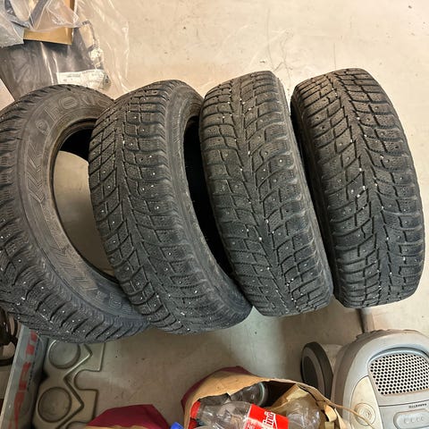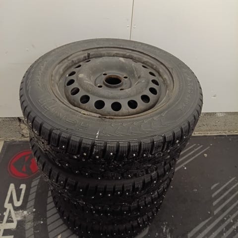 Tästä seuraavalle autotallin perukoilta 5x100 ET 35 peltivantein Nokian Nordman 7 175/70R14 hyvillä nastoilla ja pintaa yli 6mm, paistoleima 20/19