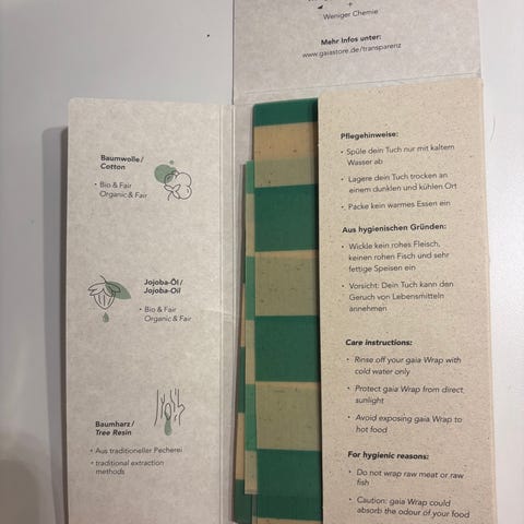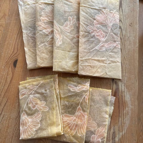 Mehiläisvahakääreitä 100% mehiläisvahaa ja kangas 100% puuvillaa. Käyttämättömiä. Koko n. 27x28 cm.