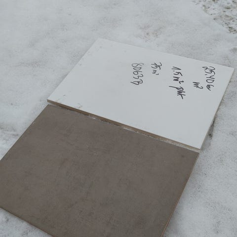 Keraamiset lattia- tai seinälaatat kahdessa värissä: ruskea ja musta.