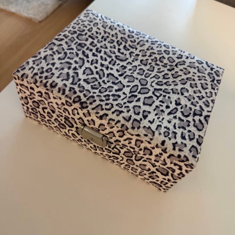 Todella vähällä käytöllä ollut korurasia/korulipas, mustaa nahkaa. Siisti ja uudenveroisessa kunnossa.