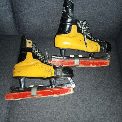 Myydään kanadalaisen Cooperin valmistamat vintage-hokkarit. Laatutuote, erittäin hyvät luistella edelleen. Terät huollettu säännöllisesti. Normaalia käytöstä aiheutuvaa kulumaa. Koko noin 42-43.