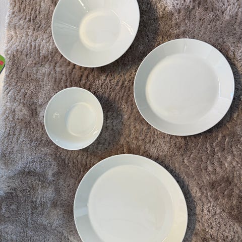 Iittala lautaset, väri valkoinen. Perusmalliset matalat lautaset, sopivat arki- ja kattauskäyttöön esimerkiksi pääruoka- tai aamiaislautasiksi.