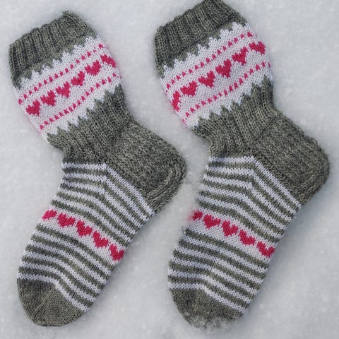 Käsintehty, konepestävä Novitan Nalle-lanka. Terän pituus n. 24,5 cm. Käyttämättä jääneet.