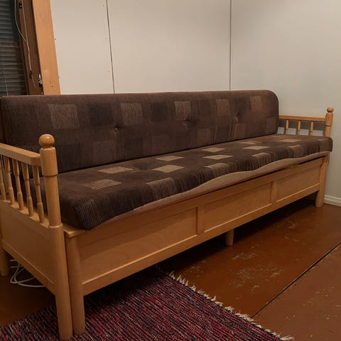 Annetaan puinen leipälaatikko. Ihan hyvässä kunnossa mutta jäykkä avata ja sulkea.