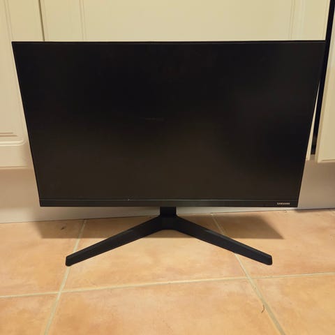 24 tuuman tietokonenäyttö. Näytössä on kapea kehys ja se on kiinnitetty jalustaan, jossa on leveä harmaa alusta. Soveltuu yleiseen tietokoneen käyttöön, kuten toimisto- ja kotikäyttöön.