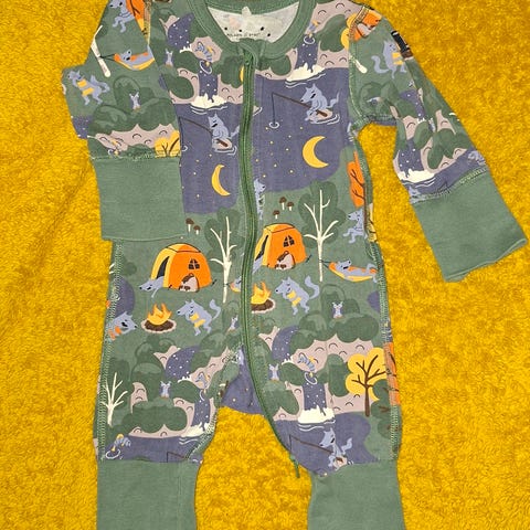 Polarn O. Pyret vauvan yöpuku koossa 50/56. Unisex-mallinen haalari, jossa on kirjava avaruusaiheinen kuosi vaalealla pohjalla. Materiaalina puuvilla. Pitkät hihat ja lahkeet, edessä vetoketju. Siisti, ehjä kunto.