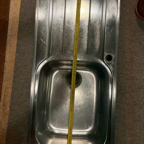 Kaksialtainen teräs tiskiallas valutustasolla 43 x 110 cm