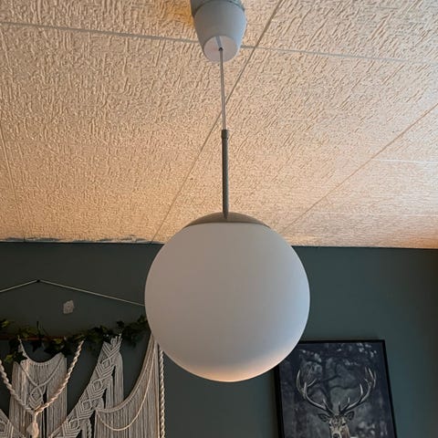 Ehjä, uudenveroinen, lasinen pallovalaisin asennettavaksi kattoon. Pistoke.