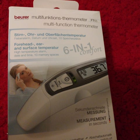 Beurer FT85 Infrapuna kuumemittarilla saa mitattua kehon lämpötilan otsasta vain muutamassa sekunnissa, ja lisäksi pintojen esim. tuttipullon sekä huoneen lämpötilan. Non-contact: mittaaminen ilman ihokosketusta, joten kuumeen voi mitata vaikka nukkuvalta lapselta. Hygieninen käyttää. Digitaalinen selkeä näyttö.