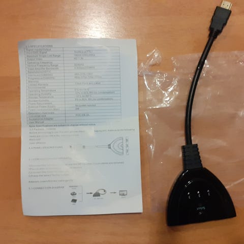 Kuvien mukainen AV-HDMI konvertteri. Virta piuha (usb) ja hdmi kaapeli tulee mukaan.