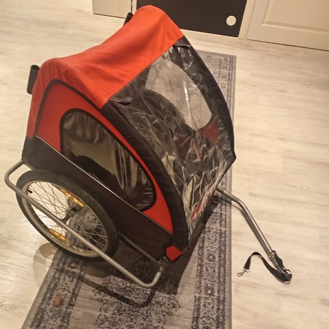 Hakusessa pyöräkärry kahdelle lapselle, ei haittaa jos juoksupyöräkin löytyis kärryyn, mutta ei pakkollinen