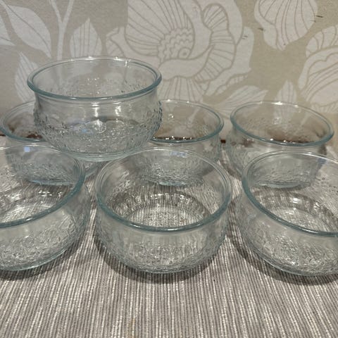 Nyt myynnissä 6-kappaletta näitä upeita pulla/leivoslautasia. Koko on 16,5cm. Linnea-sarja on mitä todennäköisemmin tehtaan oma mallisto ilman nimettyä yksittäistä suunnittelijaa. Näyttää paljon Ultima Thulelta. Tästä nyt uudenveroiset lasilautaset edullisesti uuteen kotiin. Hinta yhdelle lautaselle. Katso myös muut myynnissä olevat esineeni.