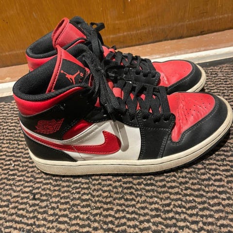 Myydään Air Jordan mid 1 tennarit, koko 41. Käytetty kunto, mutta hyvin pidetty. Korkeavartinen malli, väritys mustavalkoinen. Päällinen synteettistä materiaalia ja nahkaa, nauhakiinnitys. Kumipohja, jossa kuviointi pitoa varten. Sopivat arkikäyttöön ja vapaa-aikaan.