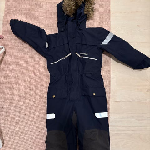 Didriksons lasten haalari, koko 110. Väri sininen, materiaali polyamidi. Haalarissa on irrotettava huppu tekoturkisreunuksella, vahvistetut polvi- ja takamuskohdat sekä heijastinyksityiskohtia. Sopii unisex-käyttöön ulkoiluun ja leikkeihin eri vuodenaikoina.