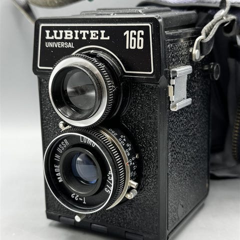 Tästä 1950-1980 vuosina valmistettu neuvostoaikainen Lubitel 2 peilikamera. Alkuperäinen kantolaukku mukana.