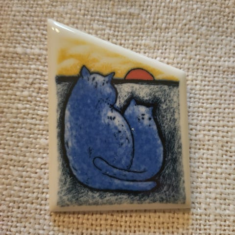 Käyttämätön Arabian rintaneula Lempiväiset, Heljä Liukko-Sundström. Alkuperäisessä pakkauksessa.