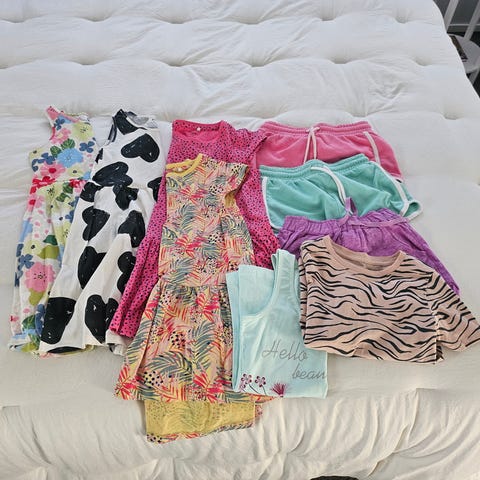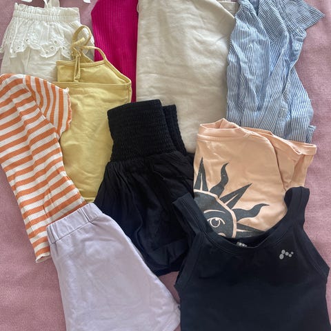 Hyväkuntoisia kesävaatteita. Koot pääosin 128cm.