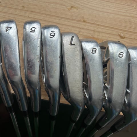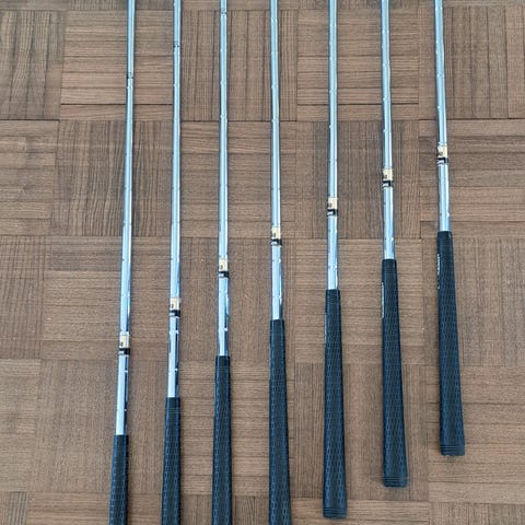 TaylorMade Tour Preferred rautamailat stiff teräsvarsilla. Setissä useita rautoja, joiden numeroita näkyy kuvissa 3, 4, 5, 6, 7, 8, 9. Mailat suhteellisen hyvässä kunnossa. Tästä pitkälyöntinen setti yhden mailan hinnalla. Gripit pitää pestä tai vaihtaa.
