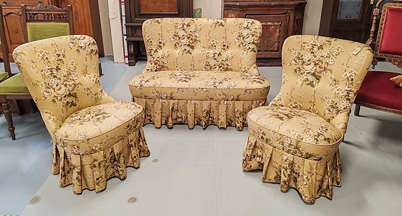 Sisältää sohvan ja kaksi nojatuolia. Pöytä myytävänä erikseen hintaan 220€