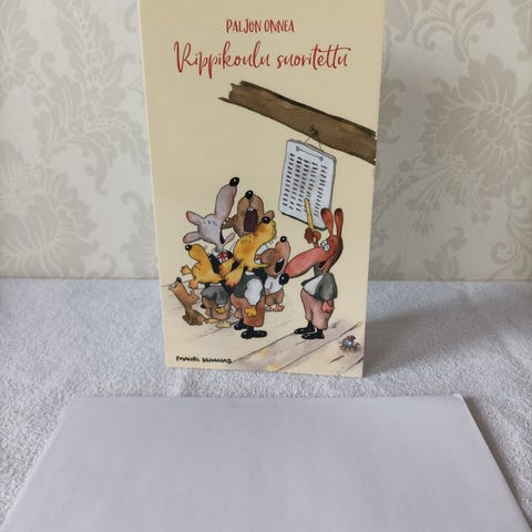 Rippipäivänä onnittelu kortti kirjekuorella.