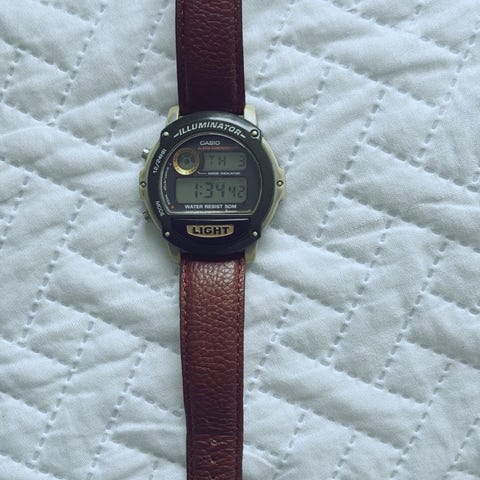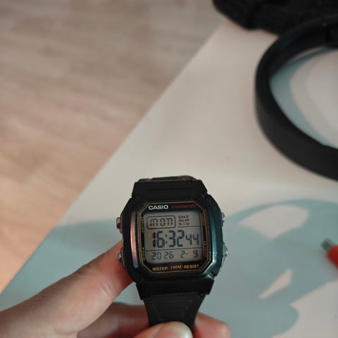Casio Illuminator. Kellossa toimii kaikki ominaisuudet. Näyttövalo, sekuntikello, ajastin jne.