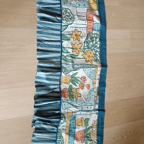 Myynnissä hyväkuntoinen pitkä verhokappa. Pituus 3.45m. Korkeus 54cm. Kuja 6cm.