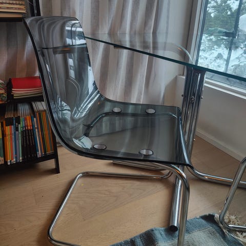 Ostetaan Ikean Tobias tuoleja otsikon mukaisesti. Naarmut eivät haittaa, näissä ei niiltä voi oikein välttyäkkään.