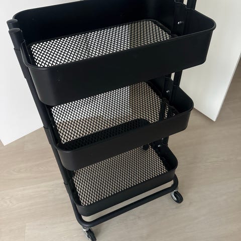 Ikea metallinen tarjoiluvaunu, jossa kolme tasoa. Väri harmaa.