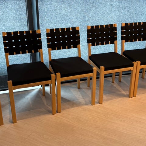 Kolme Artekin satulavyö tuolia. Vyöt vaihdettu eikä ole olleet käytössä sen jälkeen. Vyö pellavaa.