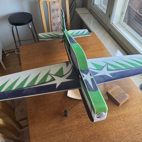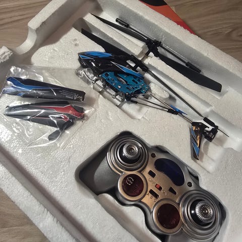 Tollanen kone olis, styroksista tehty ja vaatii laittoa, ei akkua, toiminnoista ei tietoa toimiiko, saa kyllä kuntoon. Nouto